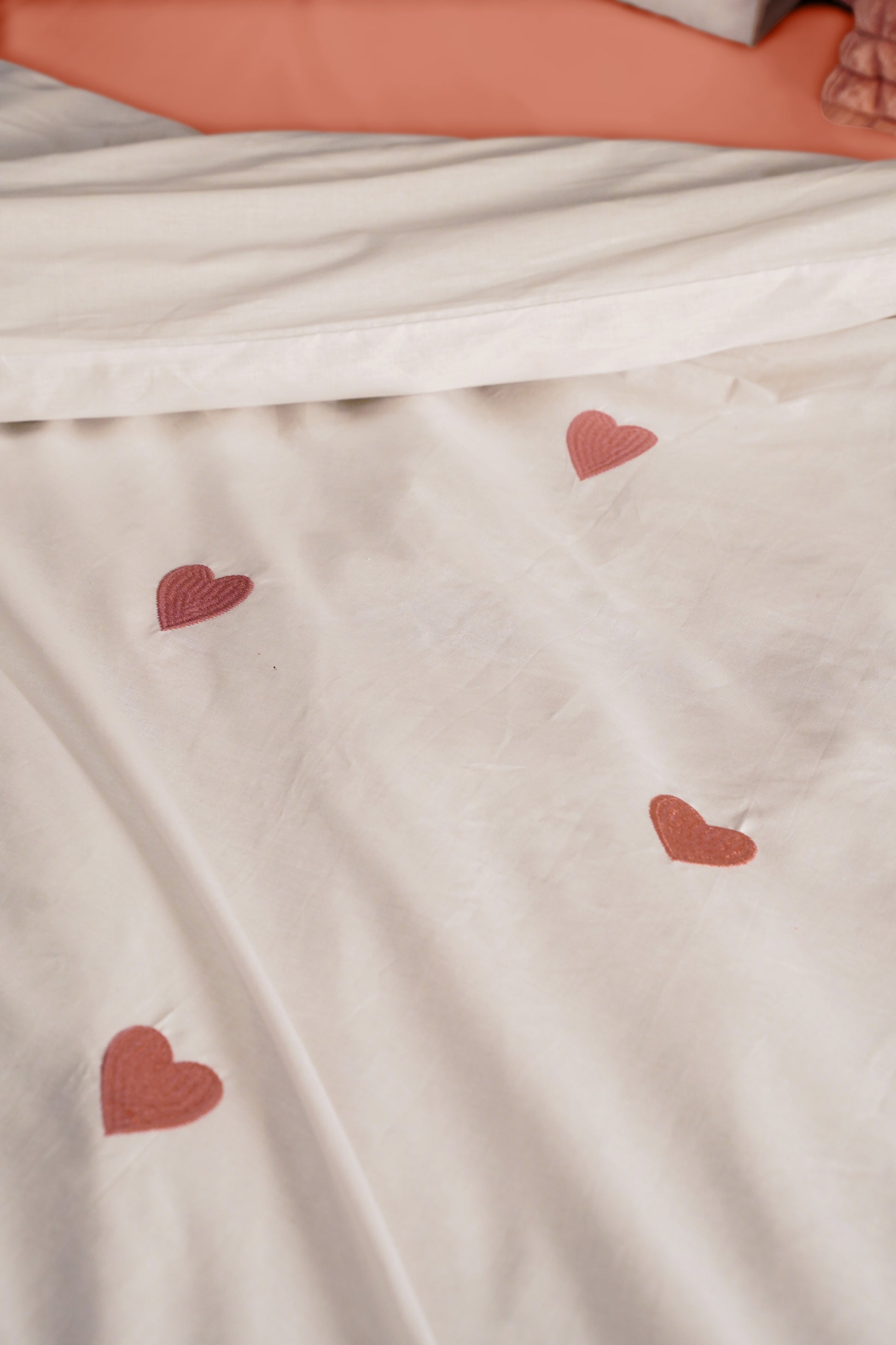 Blush Pink Heart Bed Set with Pink Fitted Sheet – King Size
